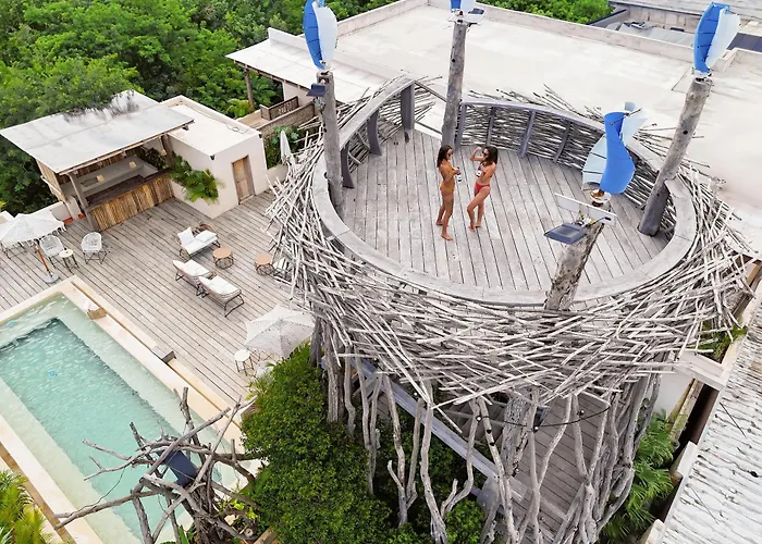 Este hotel de 4 estrellas está situado a 2 km de la Torre Tulum y muy cerca del Templo de los Frescos. El hotel Kuunaa Tulum I Beer Sanctuary & Spa está situado a unos 10 minutos en coche del Templo de la Perdición de Tulum. Este hotel está a 5 km del Gran cenote y de otras atracciones principales de Tulum.